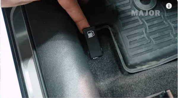 1. Кнопка открытия лючка бензобака расположена в салоне автомобиля в ногах у водителя.