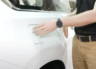 2. После нажатия кнопки аккуратно откройте лючок бензобака вручную.