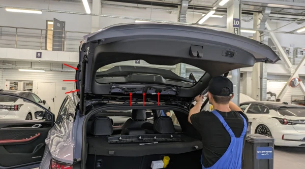 Была сервисная компания по замене электроприводов багажника. Все потому что часть машин приехала без нужных уплотнительных резинок. Вода при мойке машины и дождливой погоде попадала внутрь и привод выходил из строя. Если у вас не дилерская машина, можно устранить самому и не дожидаться поломки. Резинки на фото стоят копейки.