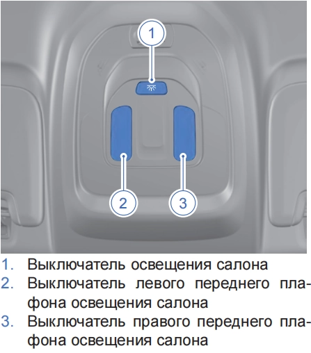 Нажмите и удерживайте выключатель заднего плафона освещения салона, чтобы